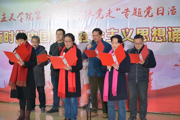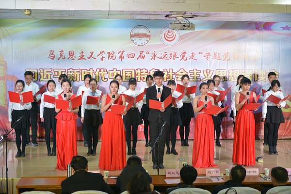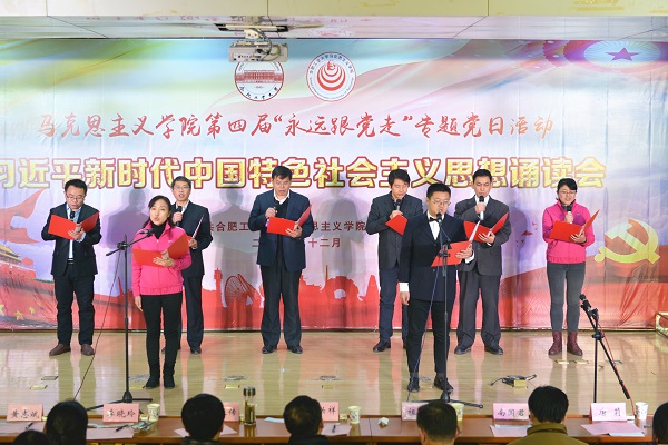 全院师生精心编排了13个朗诵节目。教工党支部中,来自思想政治教育系党支部朗诵的《中华文化颂》,讴歌了灿烂的中华优秀传统文化,阐述了以习近平新时代中国特色社会主义思想为指导,更好坚定文化自信,构筑中国精神、中国价值、中国力量。院机关党支部朗诵的《牢记使命 做合格共产党员》抒发了在学院基层服务的党务工作者、教务工作者和辅导员们,在学习十九大精神过程中的所思所悟和践行承诺。马克思主义基本原理教研部党支部朗诵的《在实现中国梦的实践中放飞青春梦想》,思考了中国梦与自身的关系,以及为实现中国梦所应尽的责任。毛泽东思想和中国特色社会主义理论体系概论教研部党支部带来朗诵《建设美丽中国 实现中华民族伟大复兴中国梦》,带领大家认识到生态文明关系人民福祉,关乎民族未来,要大力推进生态文明建设,努力建设美丽中国,实现中华民族永续发展。中国近现代史纲要教研部党支部通过诵读《十九大报告(节选)》,带领师生们重温习近平总书记在十九大报告中掷地有声的话语。