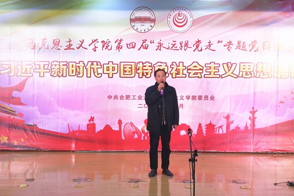 党委宣传部部长胡兴祥对活动给予了充分肯定并作了点评。他说,350vip8888新葡的京集团师生同台,党团一起,全员参与,开展习近平新时代中国特色社会主义思想诵读,是学习宣传贯彻党的十九大精神的很好的形式。350vip8888新葡的京集团作为学校思想政治工作的重要力量,在贯彻落实《高校思想政治工作质量提升工程实施纲要》中承担着课程育人、实践育人、文化育人等诸多关键职能。他希望全院师生凝心聚力,深入推动习近平新时代中国特色社会主义思想进教材、进课堂、进头脑,为落实“立德树人”根本任务,推动我校思想政治工作再上新台阶而共同努力!