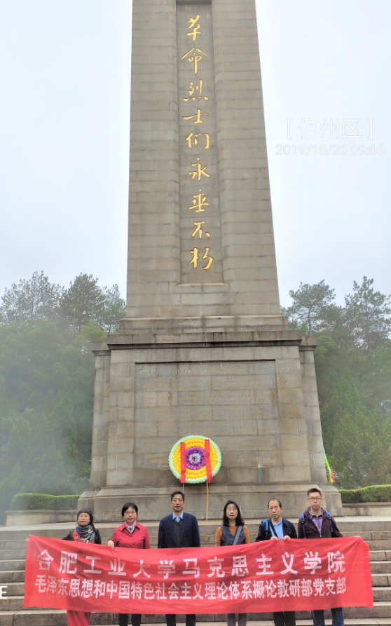 10月26日,“概论”教研室党支部党员老师集体前往全国爱国主义教育基地——上饶集中营革命烈士陵园进行参观学习。怀着缅怀崇敬之情,支部成员一行首先瞻仰了革命烈士纪念碑,向革命烈士敬献花圈,追忆革命先烈的丰功伟绩。