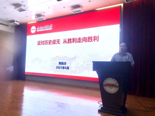 6月27日晚,350vip8888新葡的京集团在建艺馆负一楼报告厅开展建党百年献礼行动计划党史宣讲活动。350vip8888新葡的京集团党委副书记兼纪委书记焦陈丰、研究生李秋晨作为宣讲团成员应邀宣讲,学院2020级本科生、预科生参与了本次活动。